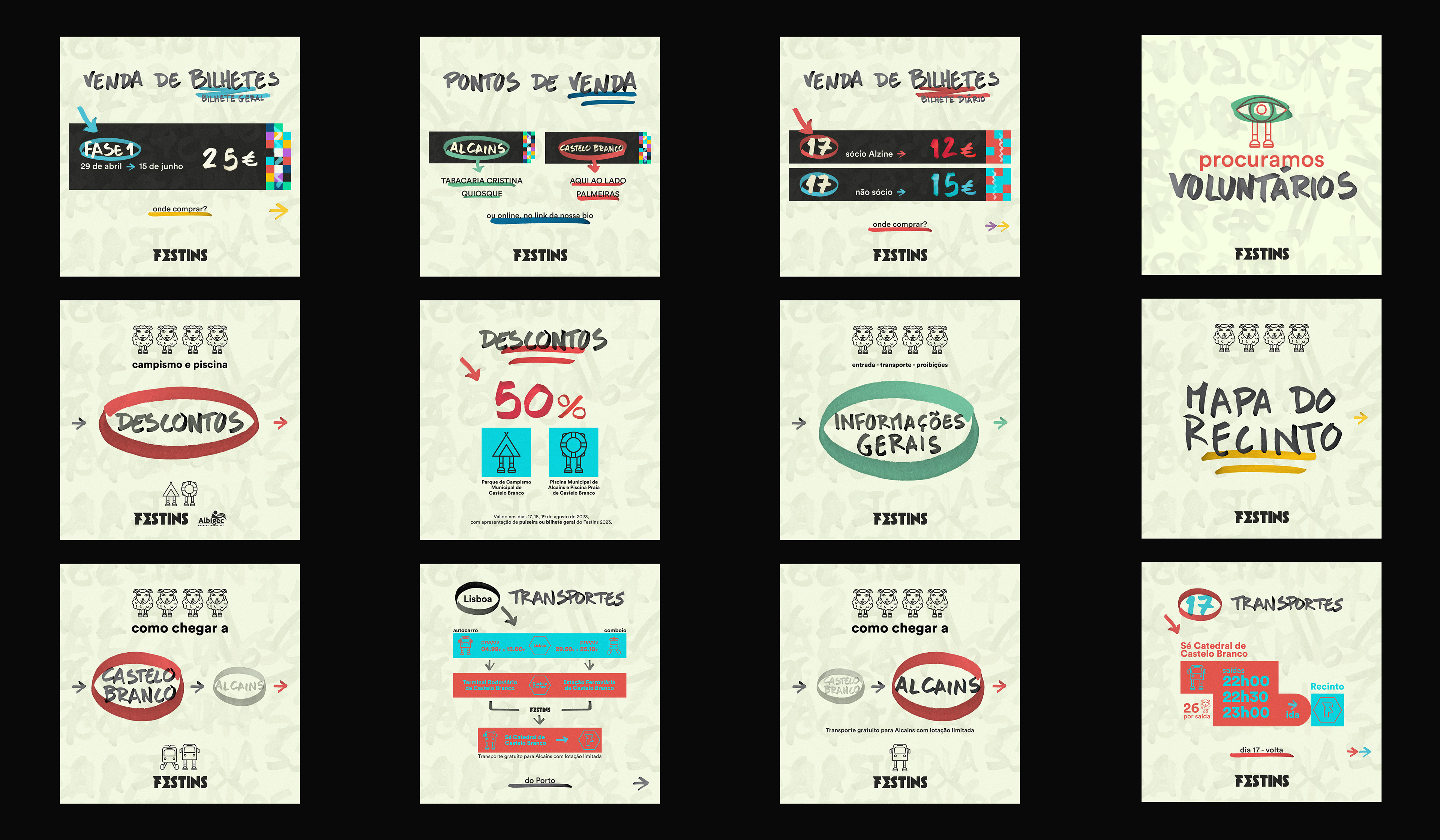 Dada a localização do espaço do Festins, junto ao “Museu do Canteiro”, museu emblemático da vila de Alcains, e após vários inquéritos e conversas com a população local, a conclusão foi clara: além de divulgar a música e os artistas que iriam atuar no festival, a comunicação do Festins apostaria na promoção dos costumes e tradições da vila, dando a conhecer o que de melhor se fez e faz nesta região, promovendo as infinitas paisagens, o campo e a natureza que nos rodeia na Beira Baixa.